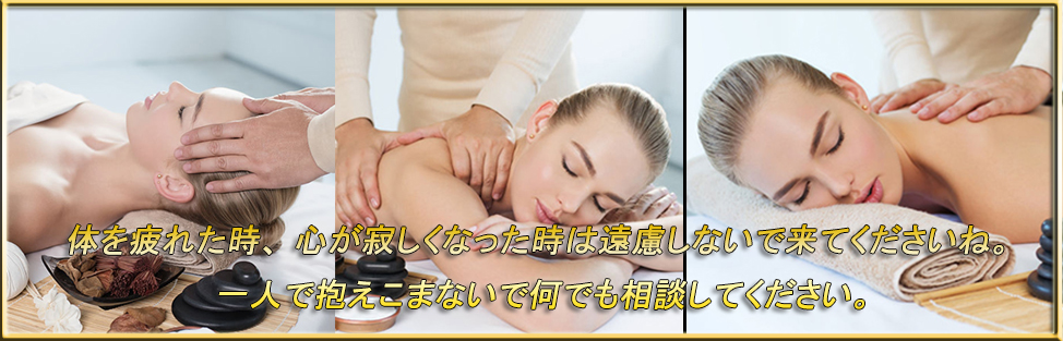 当店のマッサージは体が楽になり、快眠と明日の爽やかな目覚め、そして生活や仕事の成功の手助けをします、眠っていた自然治癒力を回復し、心身の緊張緩和を図ることで、ストレスや疲れを改善します。あまりの気持ち良さに、ついつい眠ってしまう人も少なくありません、夜はぐっすり快眠朝は目覚めも良くなり、食事も非常に美味しくいただけるでしょう。健康があってこそ、生活や仕事も充実します。是非、あなたの体の健康管理のお手伝いをさせてください。